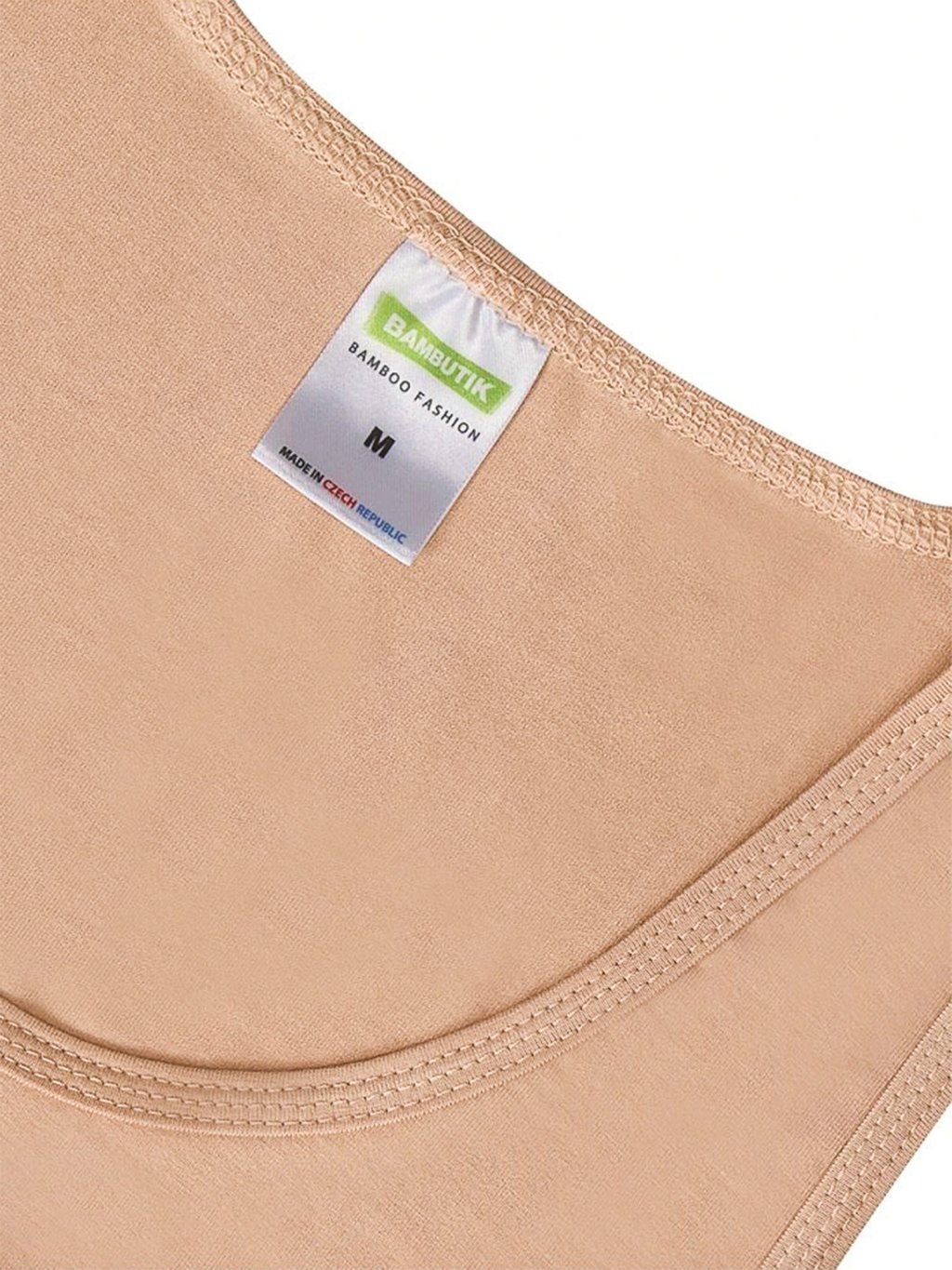 Bambusová viskóza zajistí přirozenou prodyšnost a tepelný komfort během chladných dnů. Béžová barva není pod bílou vidět a díky české výrobě máte jistotu kvality.