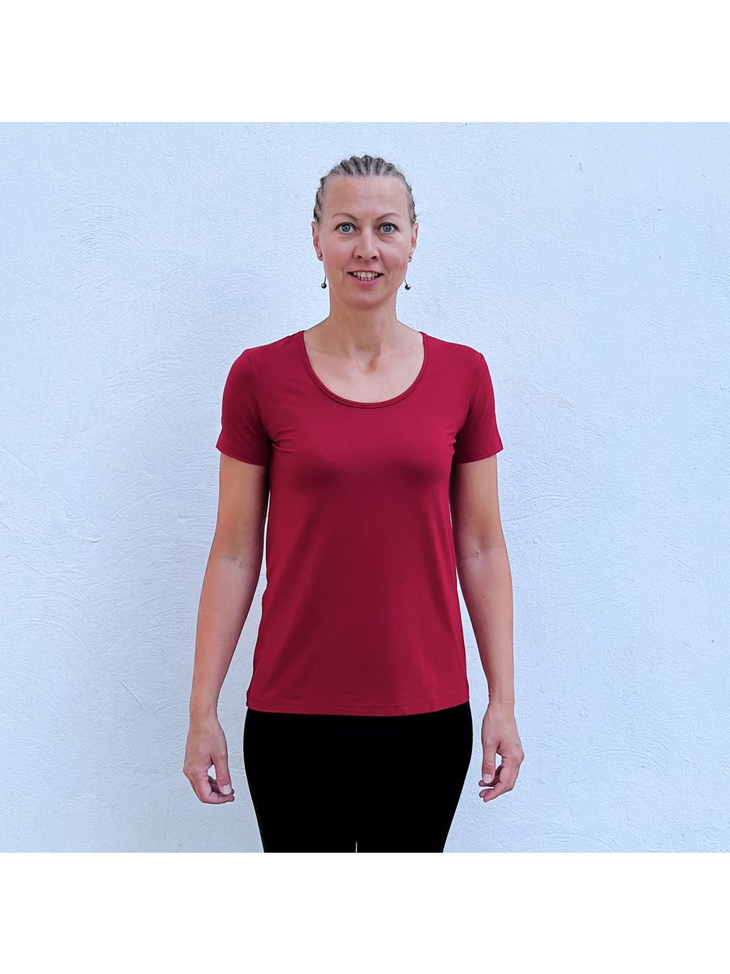 Bambusové Tričko Basico Červené Krátký Rukáv Dámské - II. jakost