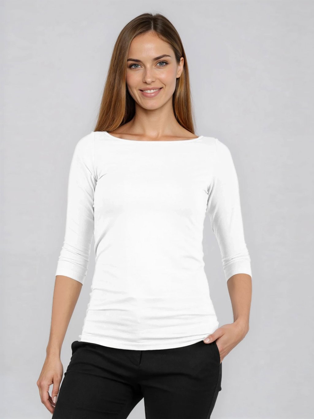 Bambusový Top Lodička 3/4 Rukáv Bílá Dámská