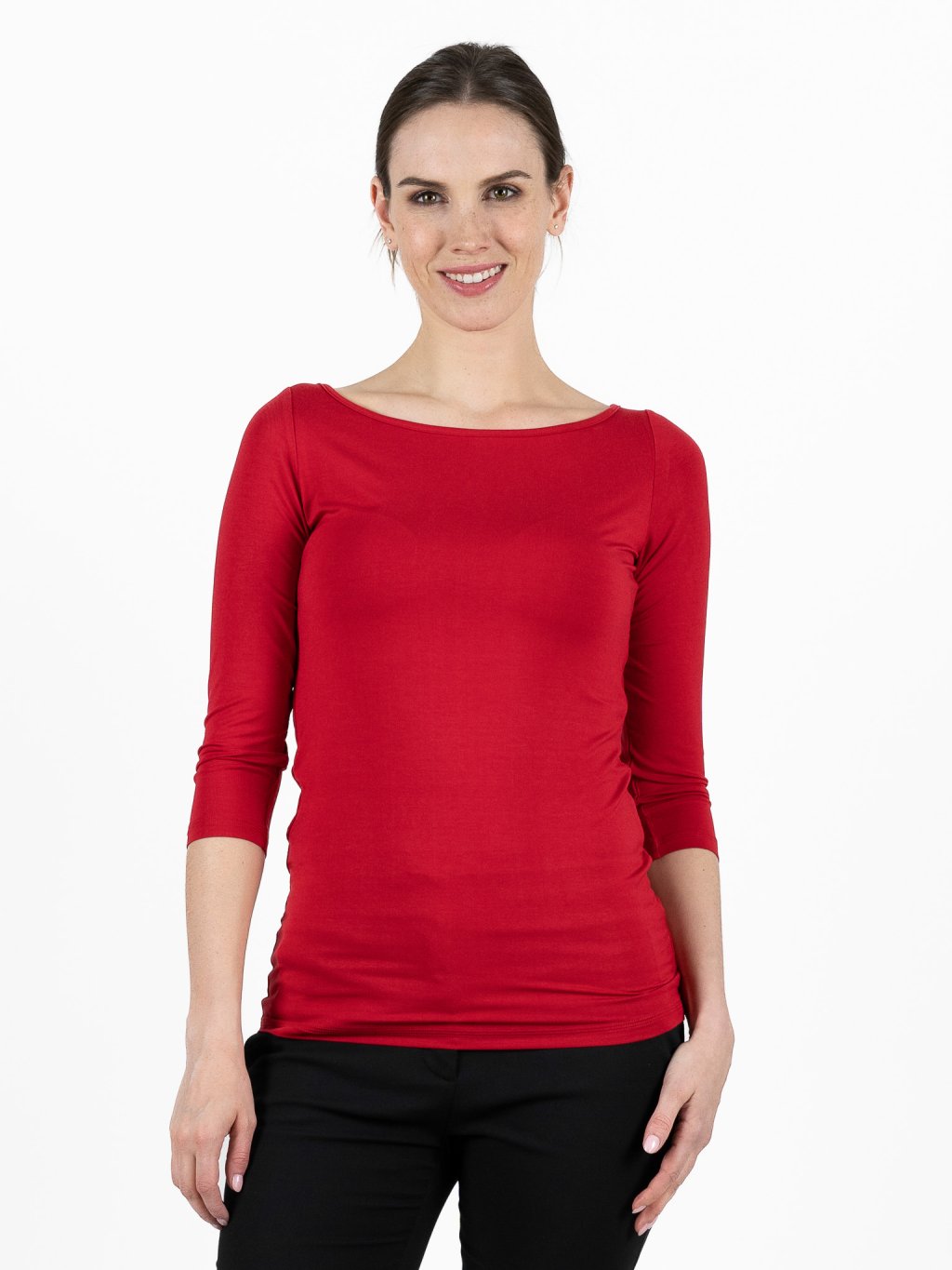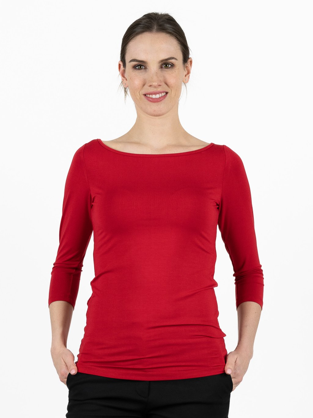 Bambusový Top Lodička 3/4 Rukáv Červená Dámská