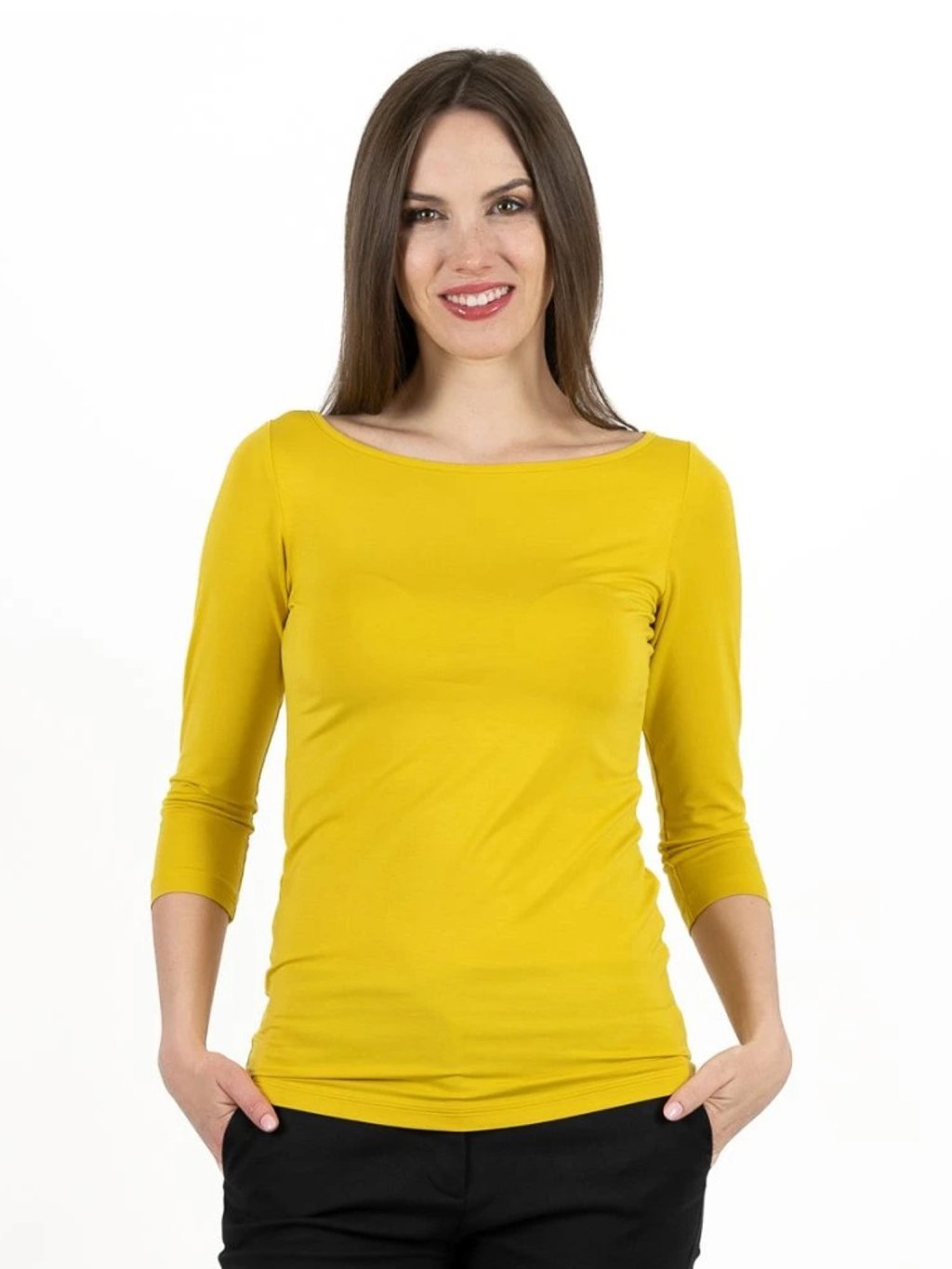 Bambusový Top Lodička 3/4 Rukáv Hořčicová Dámská
