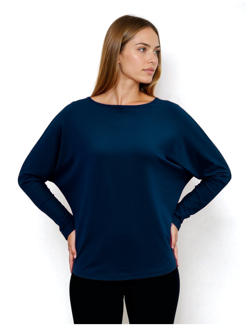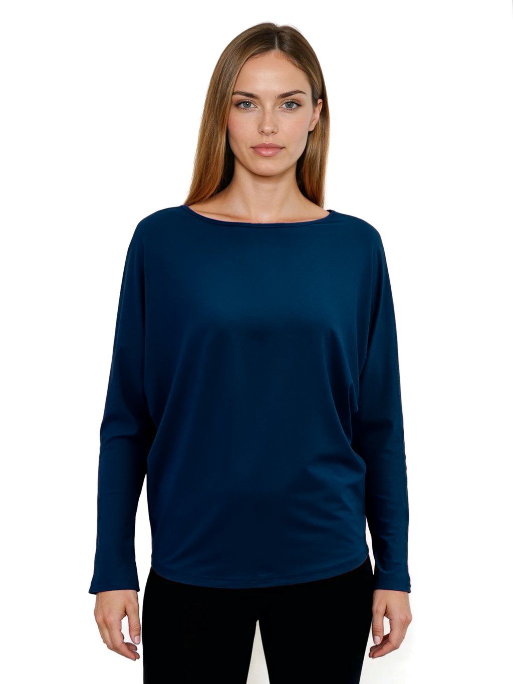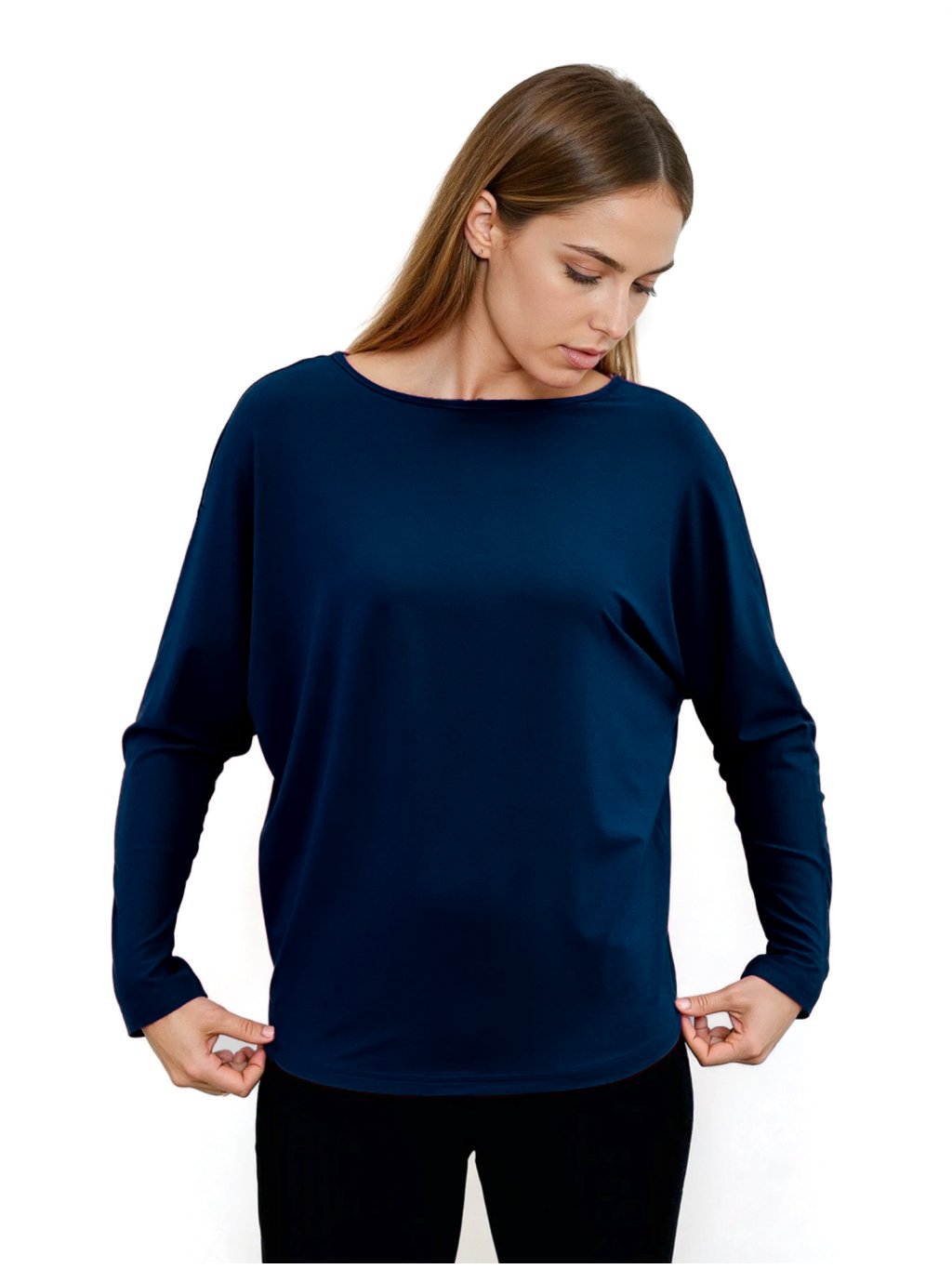 Bambusový Top Netopýr Námořnický Modrý Dlouhý Rukáv Volný Střih Dámský