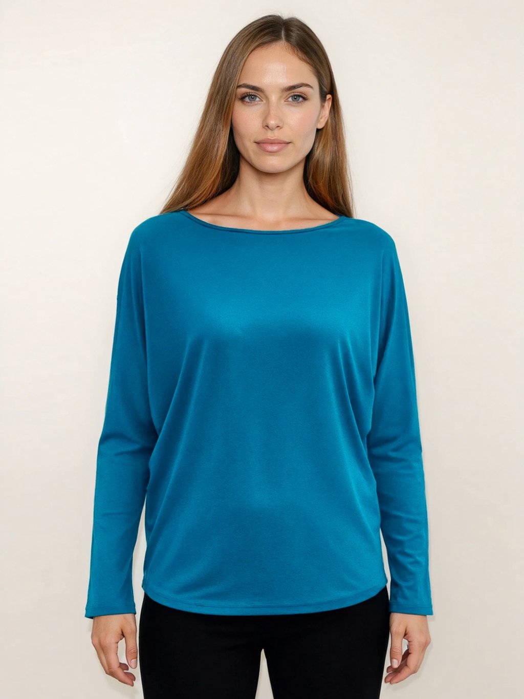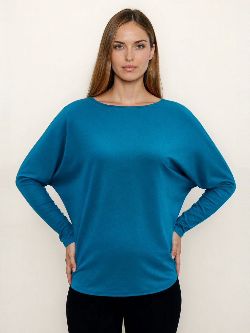 Bambusový Top Netopýr Oceánově Modrý Dlouhý Rukáv Volný Střih Dámský