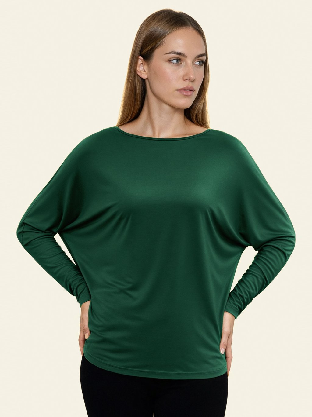 Bambusový Top Netopýr Tmavě Zelený Dlouhý Rukáv Volný Střih Dámský