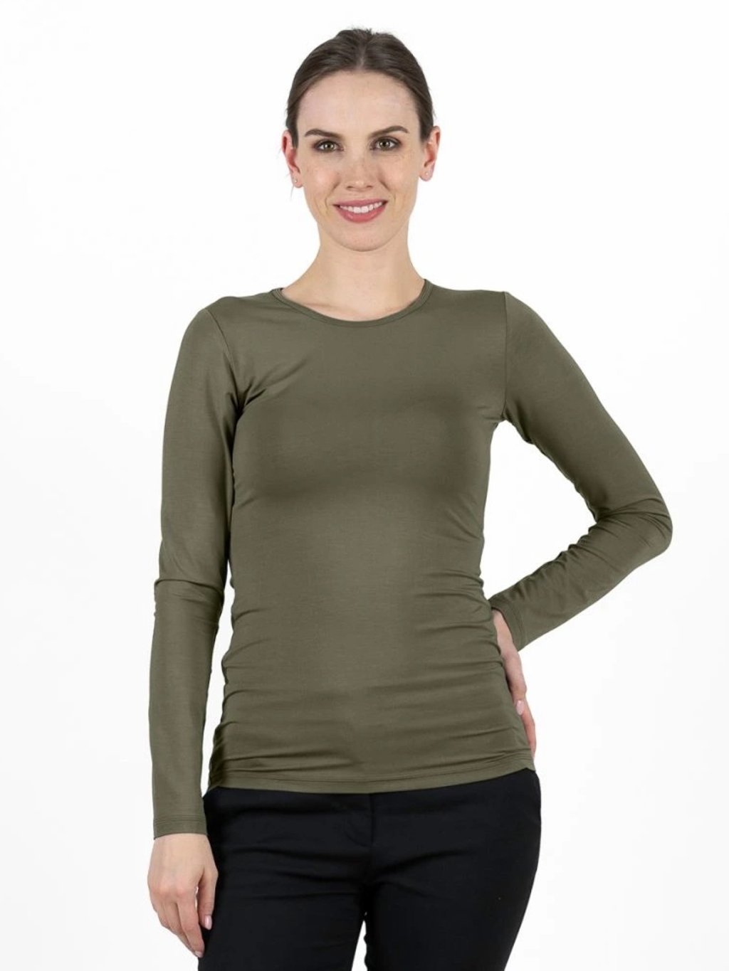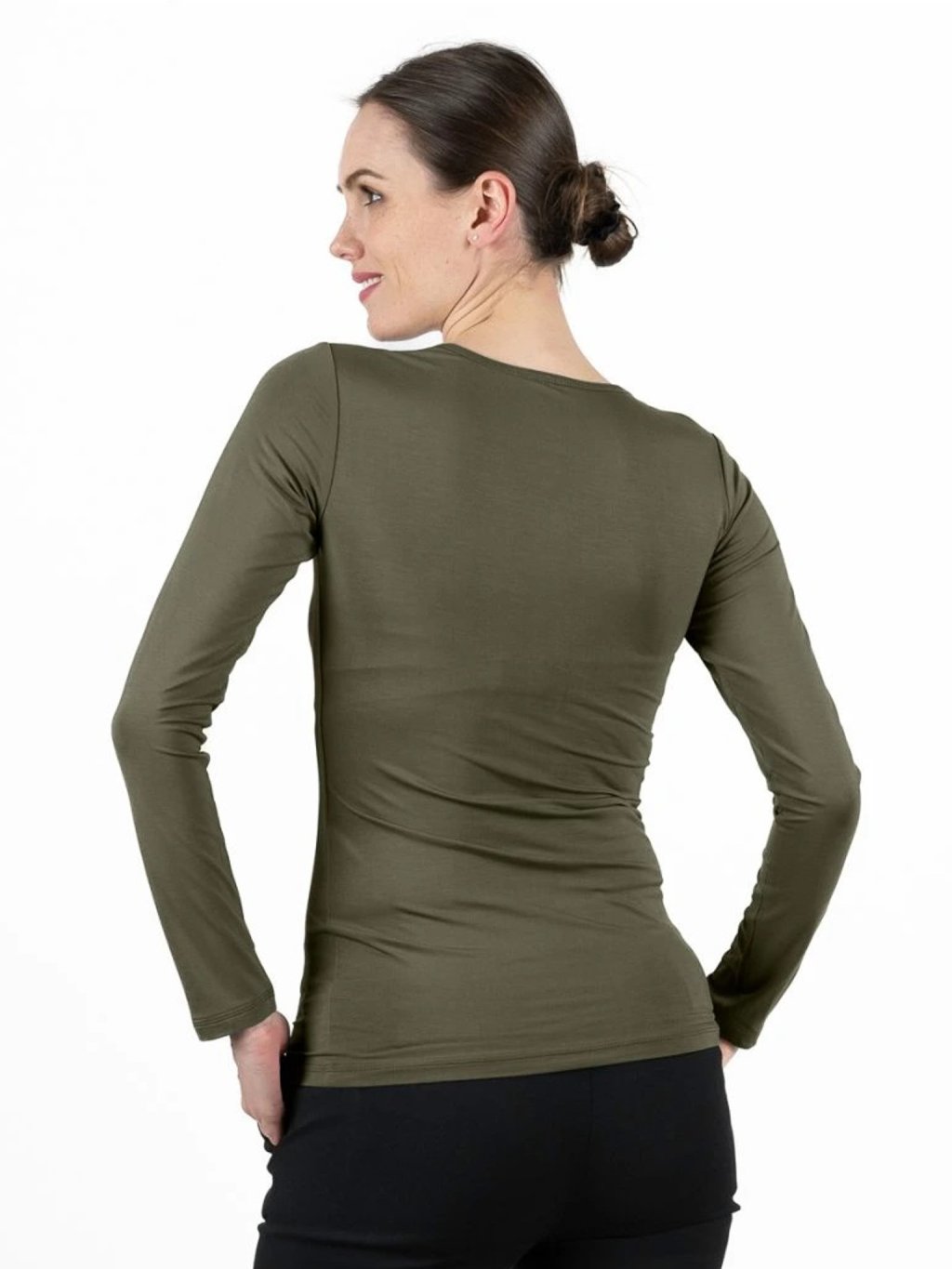 Bambusové Tričko Classic Khaki Dlouhý Rukáv Dámské