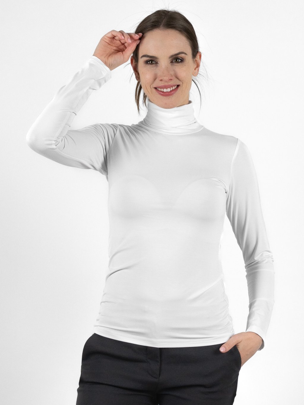 Bílý rolák je kousek, který se hodí do každého šatníku.