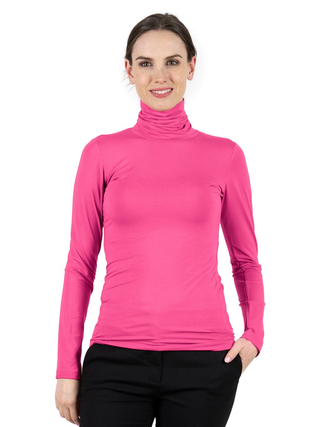 Střih roláku 2.0 příjemně zahřeje, elegantně sedí kolem krku a přitom nepůsobí staženě. Fuchsiová barva zvýrazní ženské rysy a dodá outfitu moderní a výrazný akcent — ideální pro období, kdy chcete dodat šatníku energii a barvu.