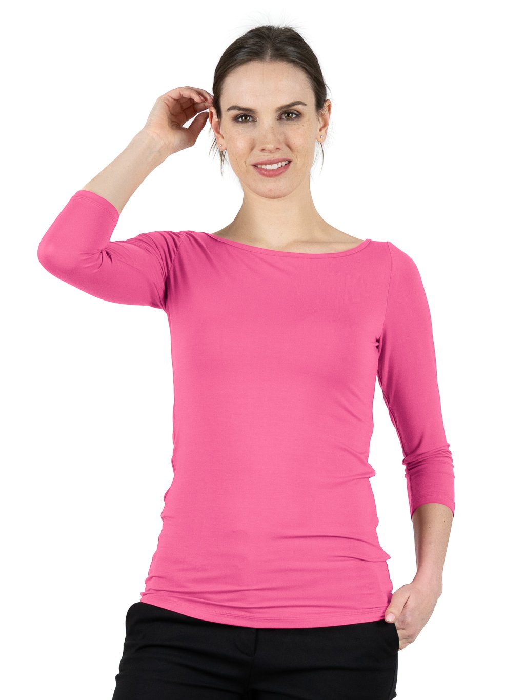 Bambusový Top Lodička 3/4 Rukáv Fuchsiová Dámská
