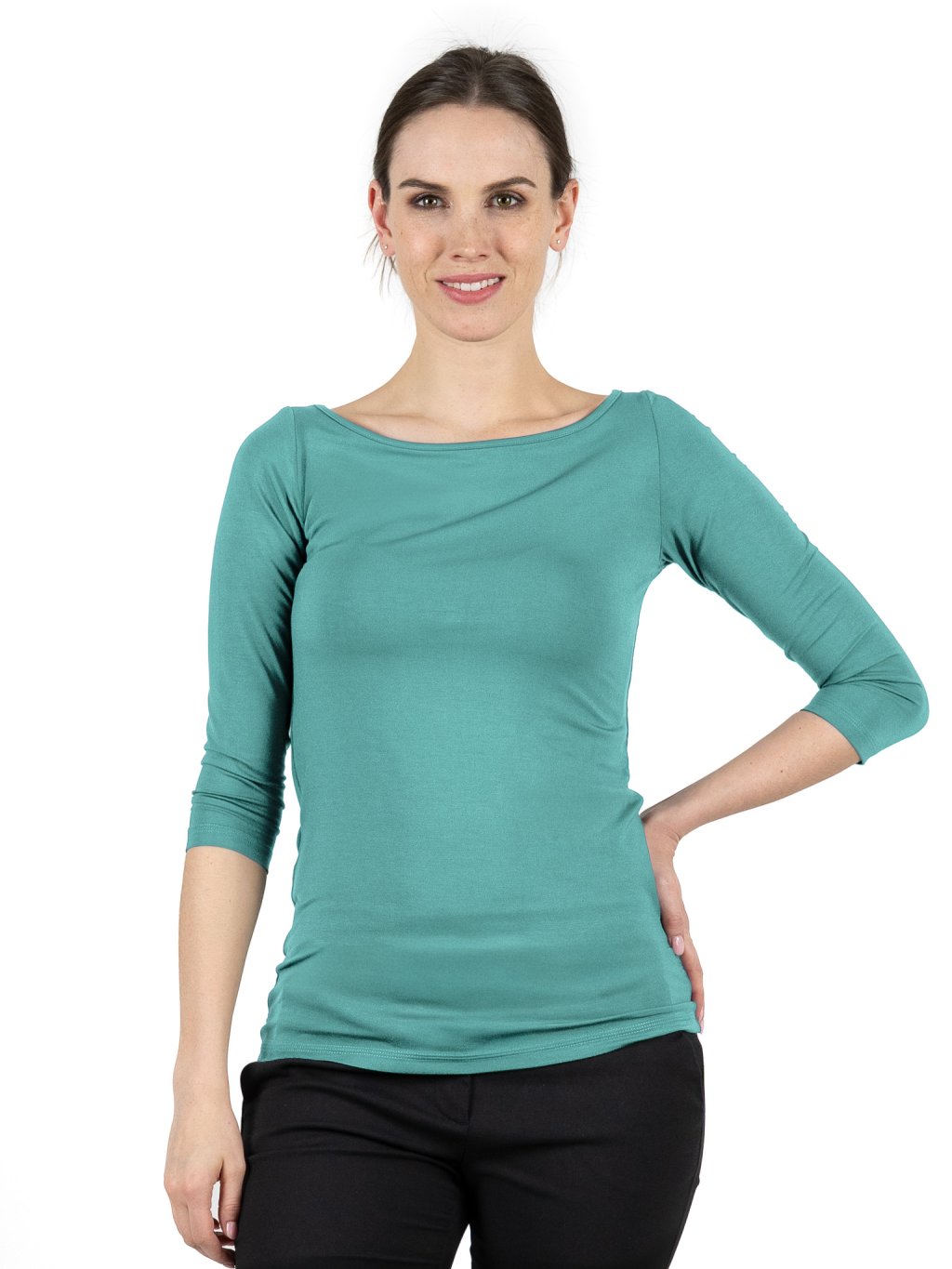 Bambusový Top Lodička 3/4 Rukáv Modrozelená Tealová Dámská