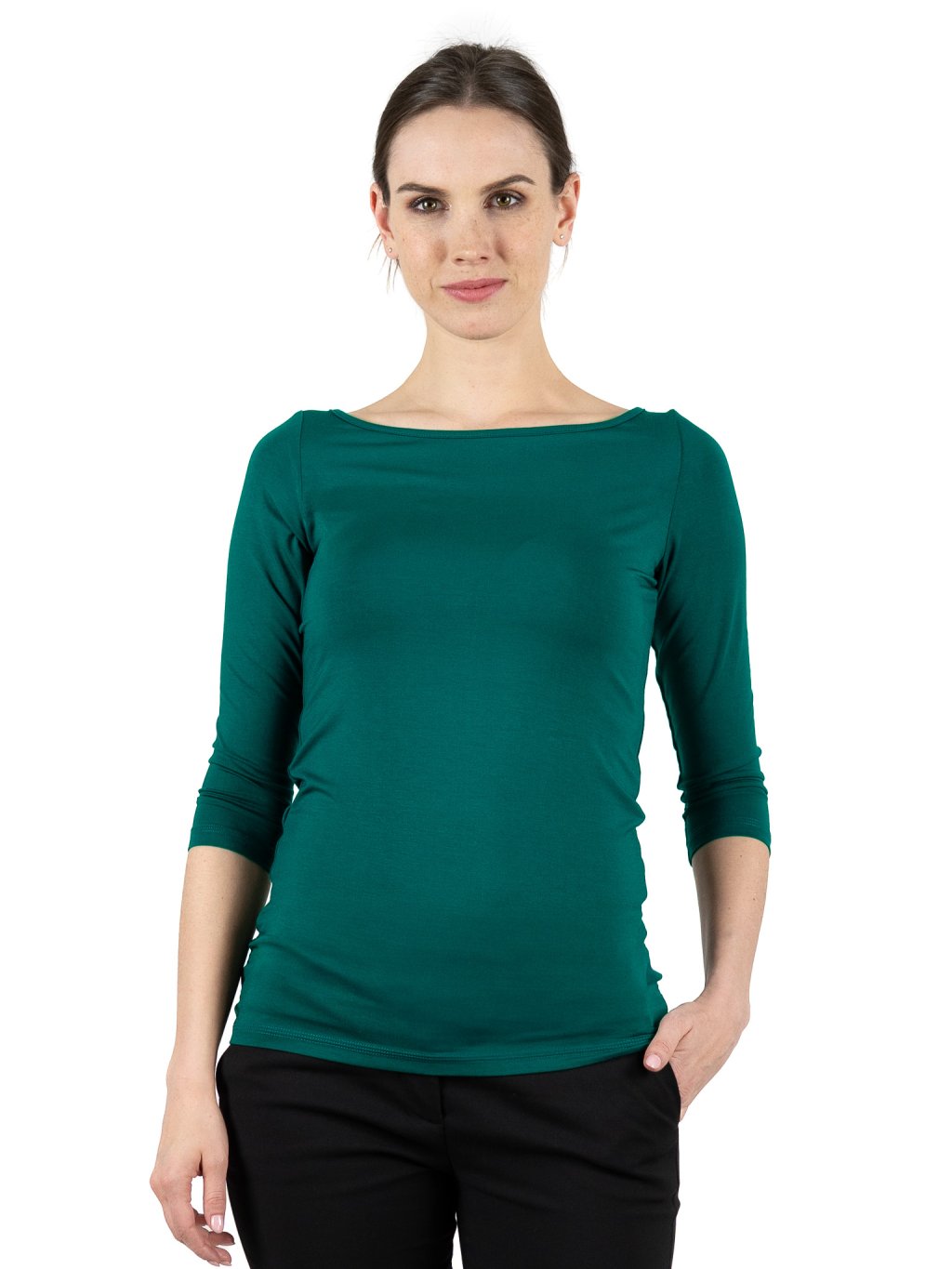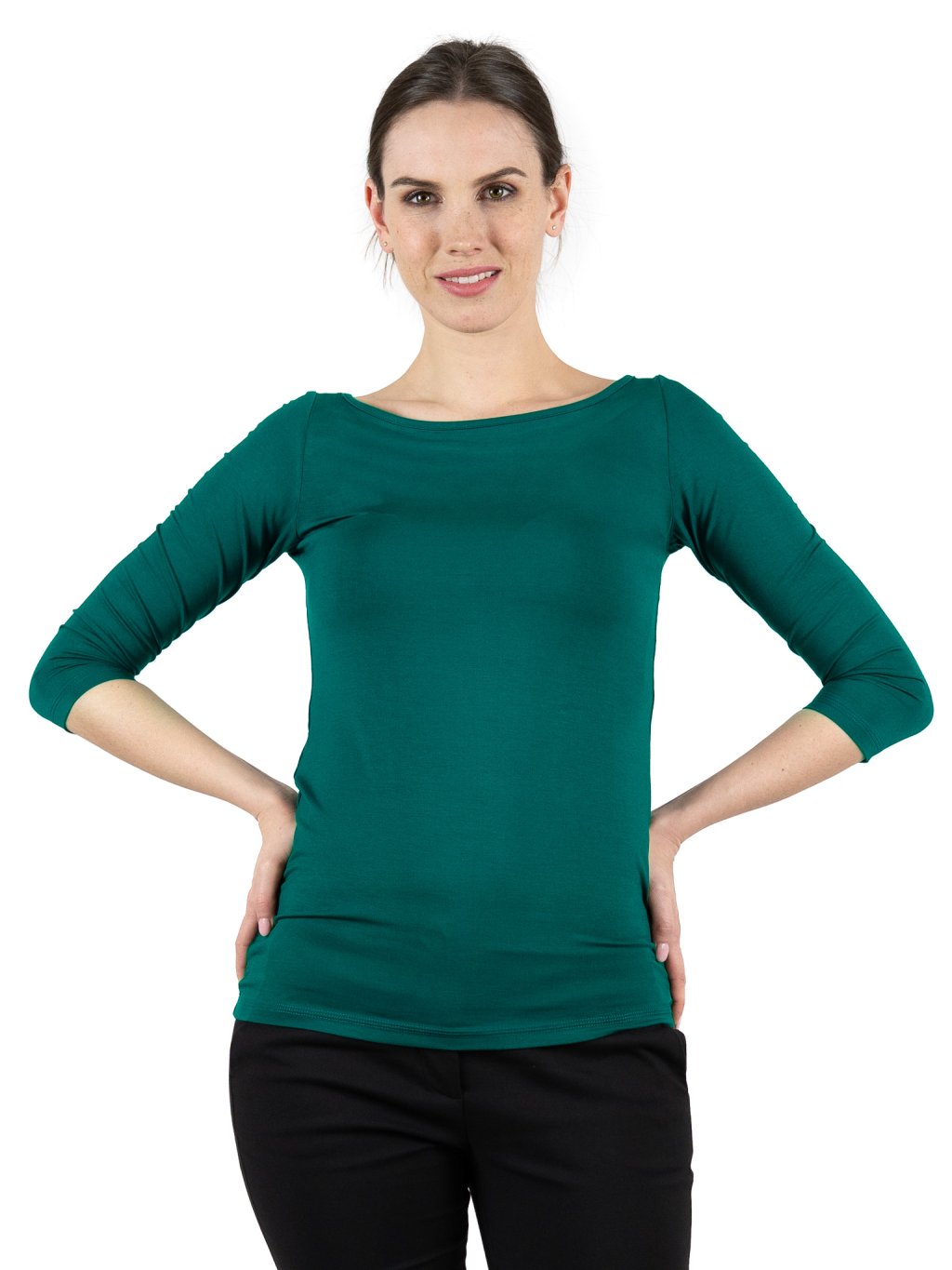 Bambusový Top Lodička 3/4 Rukáv Tmavě Tyrkysová Dámská