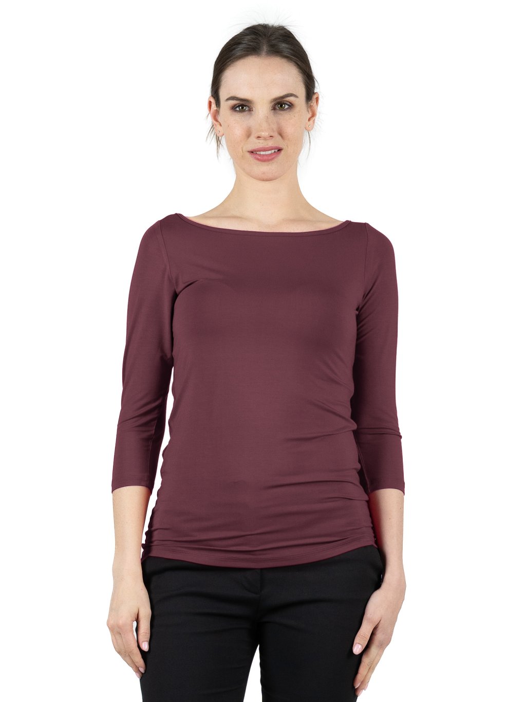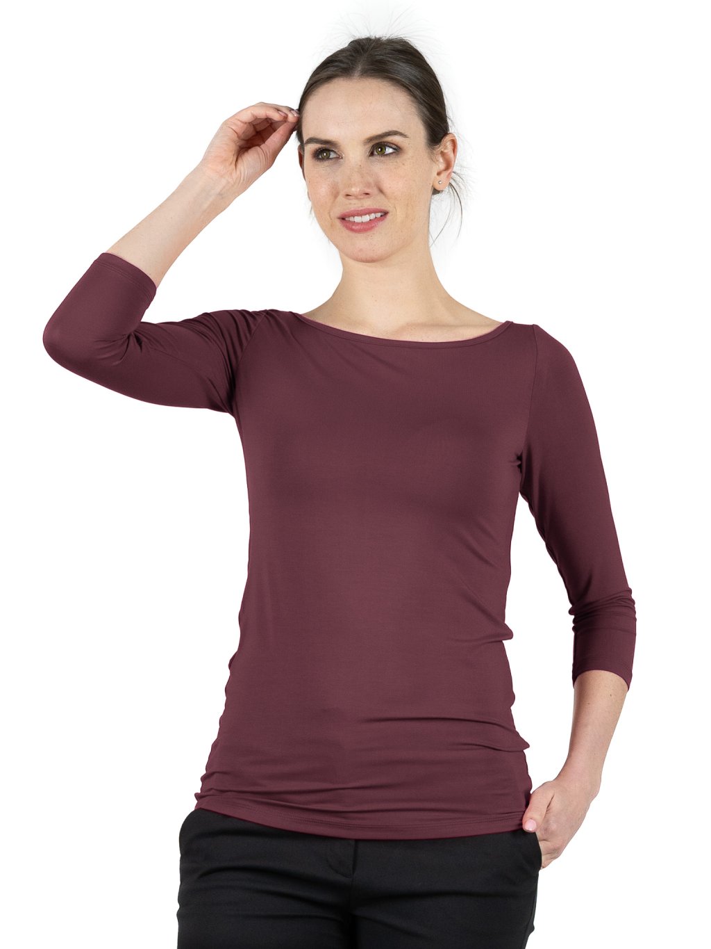Bambusový Top Lodička 3/4 Rukáv Vínová Dámská