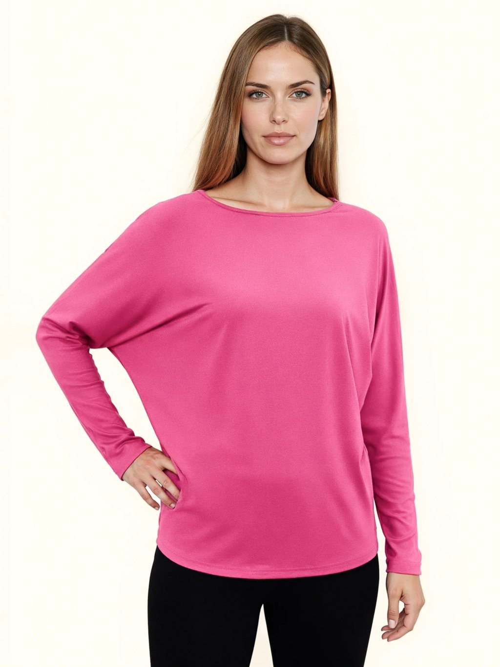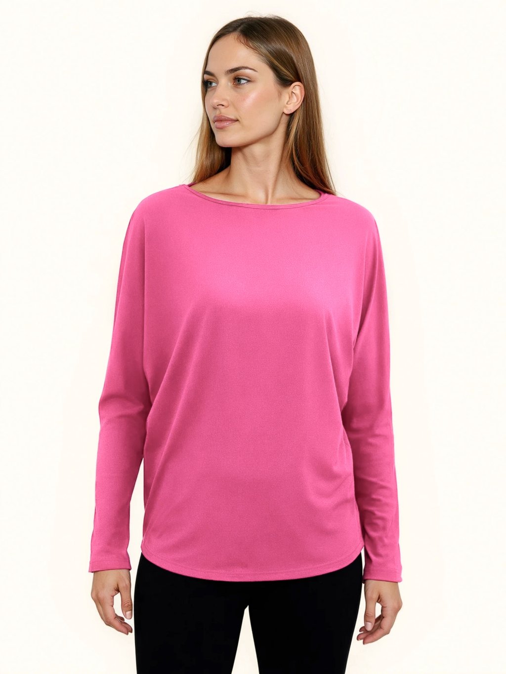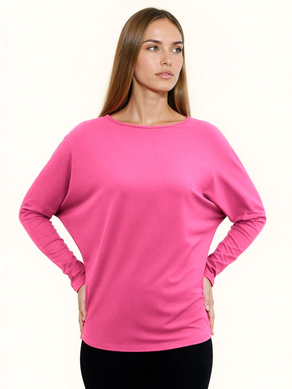 Bambusový Top Netopýr Fuchsiový Dlouhý Rukáv Volný Střih Dámský