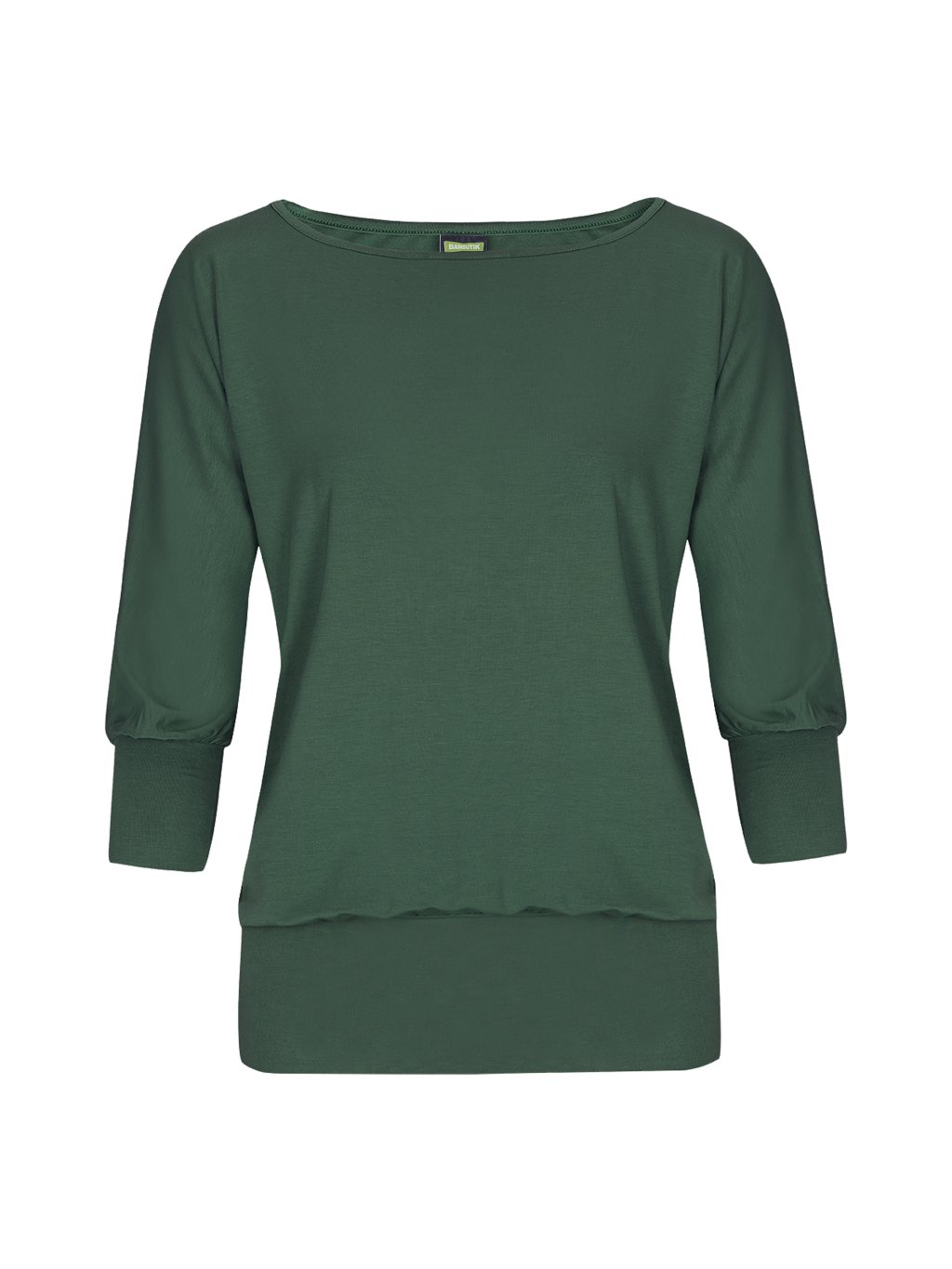 Bambusový Top Netopýr Tmavě Zelený 3/4 Rukáv Volný Střih Dámský - II. jakost