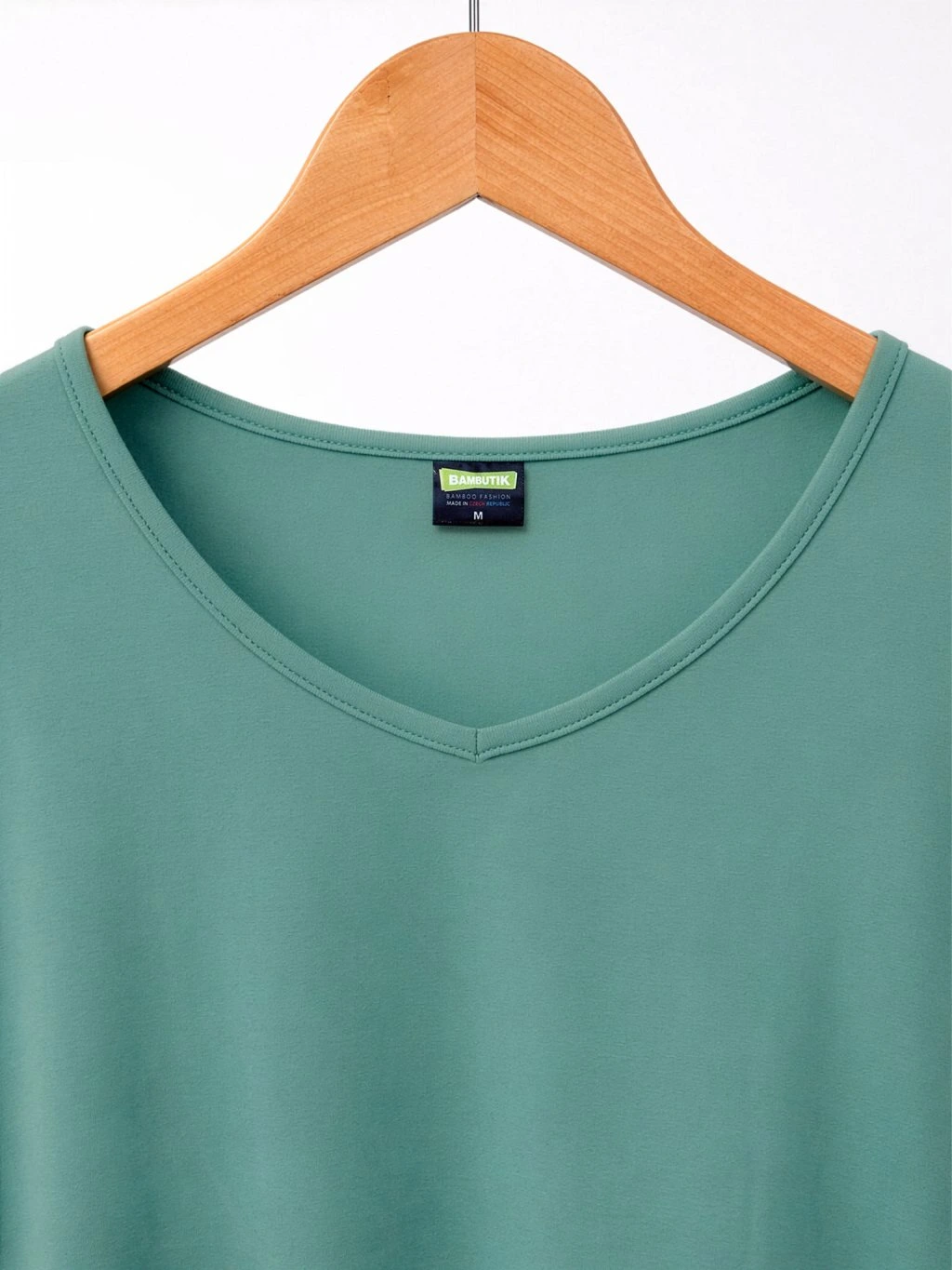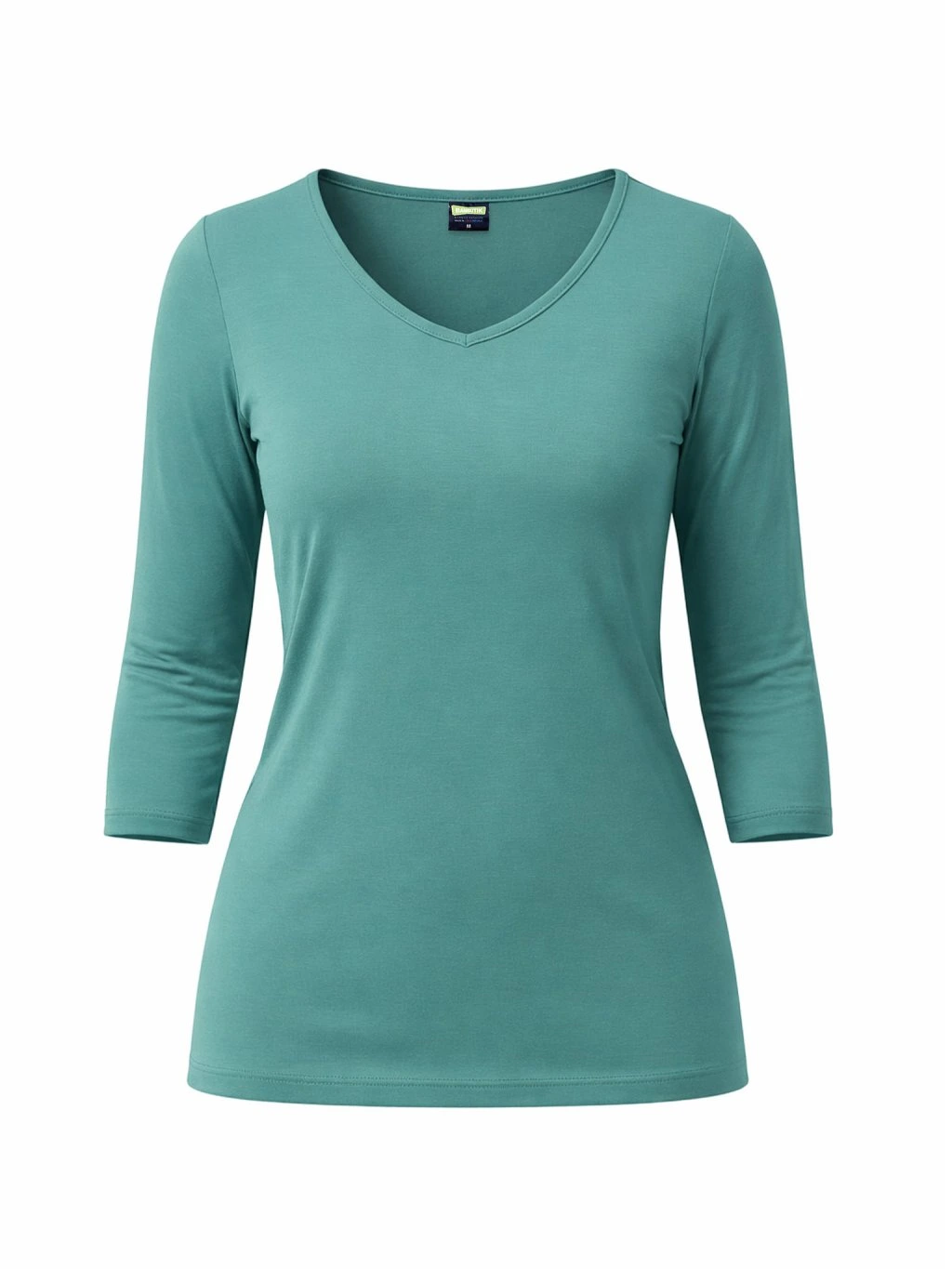 Dámské modrozelené tealové bambusové tričko s V-výstřihem a 3/4 rukávem – Heart