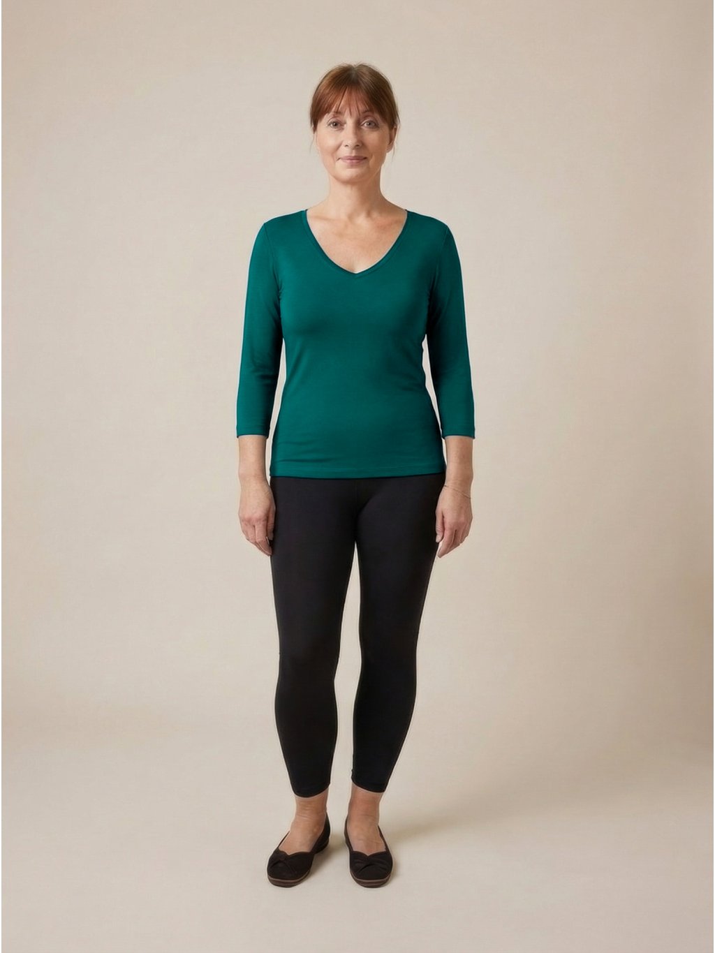 Dámské tmavě tyrkysové bambusové tričko s V-výstřihem a 3/4 rukávem – Heart